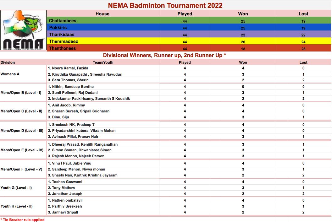 Click Here to NEMA BADMINTON 2022 Match Results