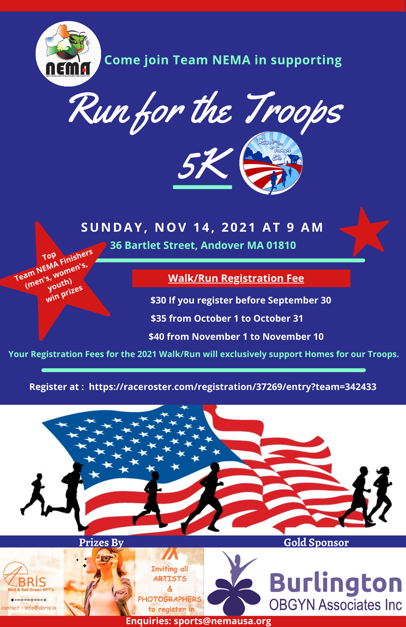 Please join Team NEMA and participate in Run/Walk for the Troops 5k on November 14, 2021 to support Homes for Our Troops(501c3). For Registration Details, please see below.